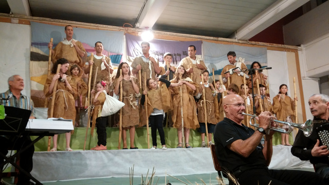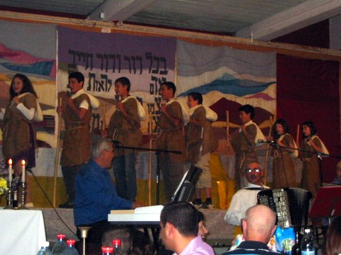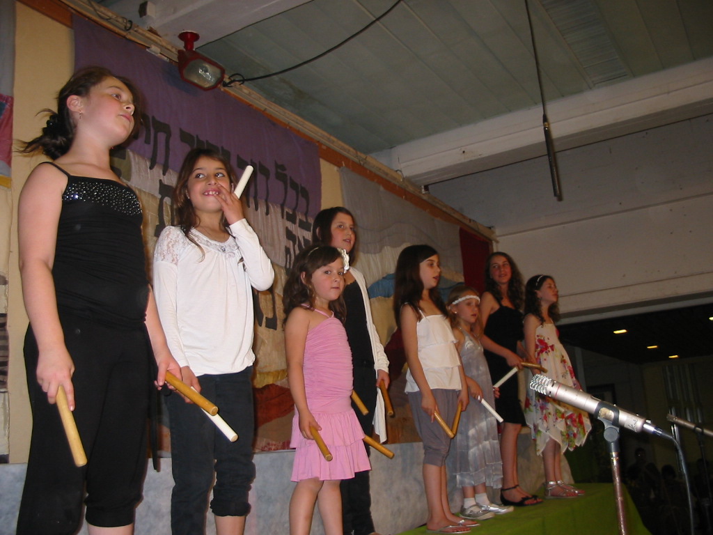 | בשירים לאחר הסעודה הצטרפו והופיעו ילדים רבים בשירה והמחזה של קטעים מההגדה והמסורת העממית.
