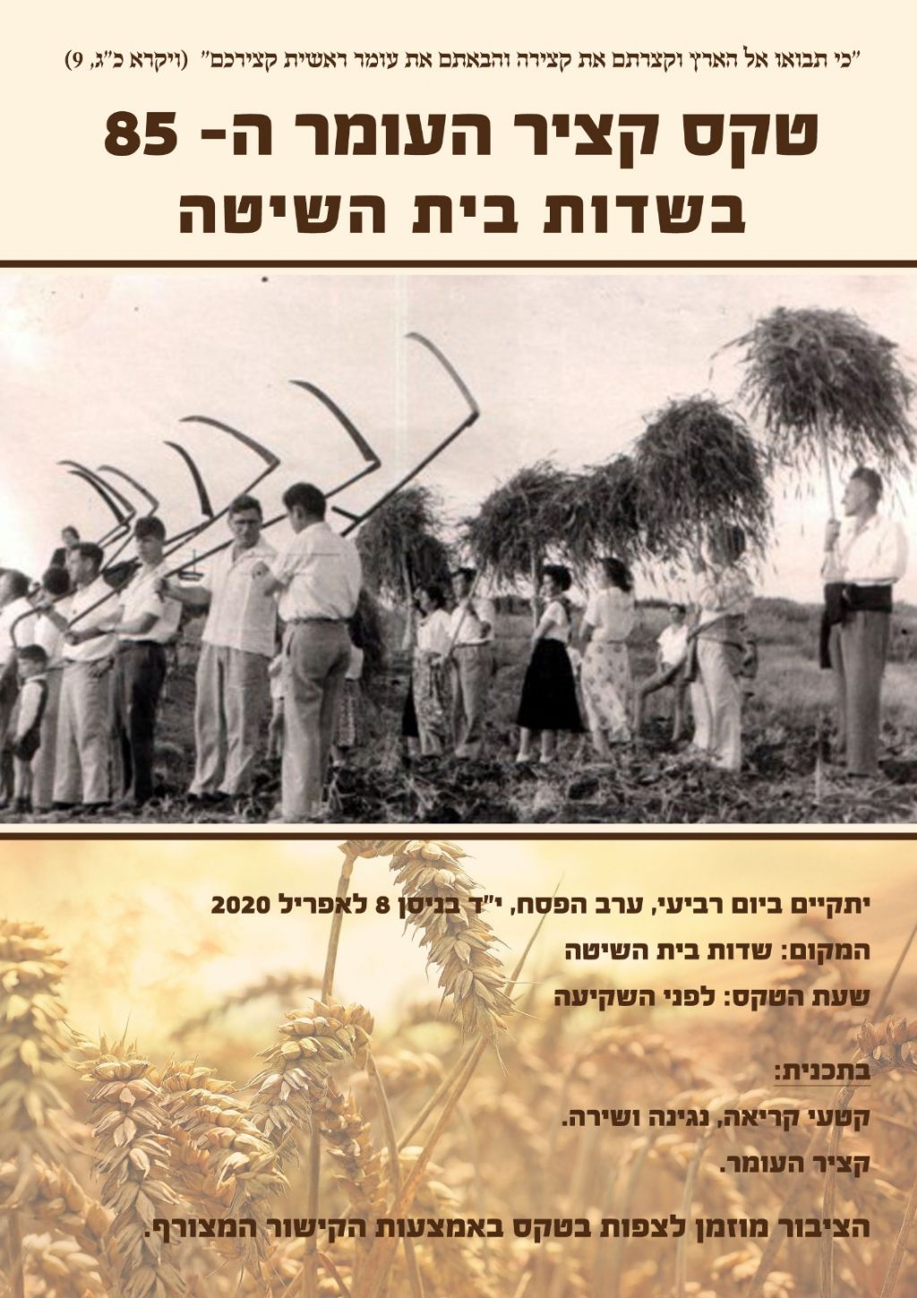 טקס קציר העומר הביא לשדה כ-200 איש!! המסגרת ‘הביתית’ הוכיחה את עצמה כמתאימה לנו ביותר. במהלך הטקס שולבו קטעי קריאה, שירה ומחול. שורת הקוצרים לא התקצרה והאלומות נערמו במהירות על ידי אימהות ובנותיהם. שעה של יופי בין הערביים.