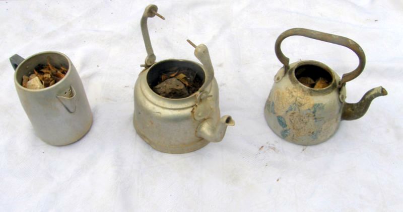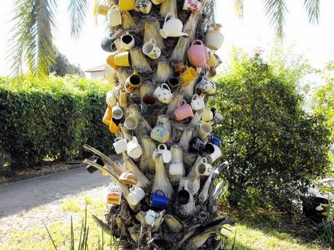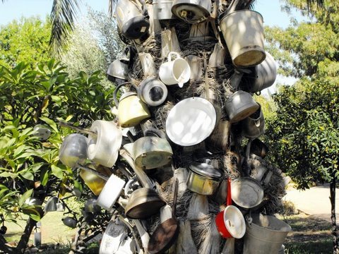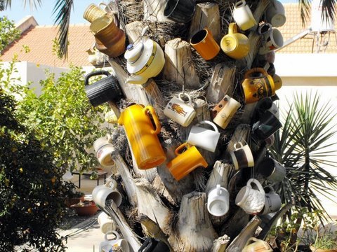 למעלה :עצי הנוסטלגיה של מירי גל ,באחד ספלים ובשני קומקומים וסירים.