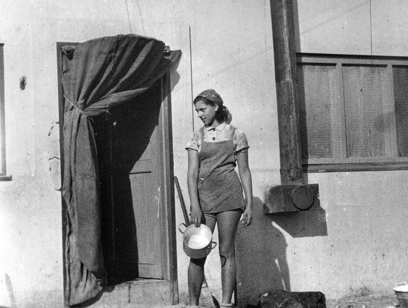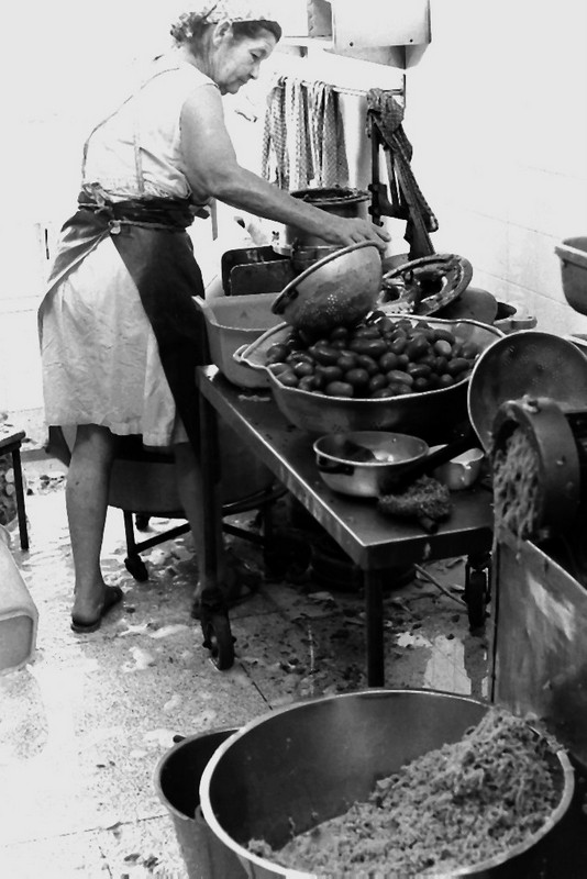 מימין-לאה והסירים בחדר הקילופים במטבח.