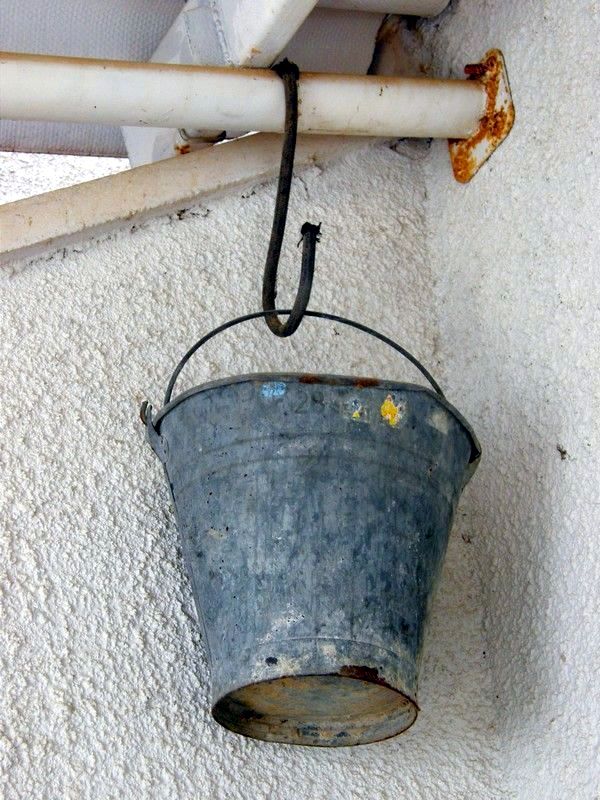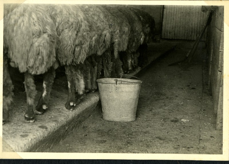 הדלי מחכה לחליבה הידנית בדיר הכבשים.
