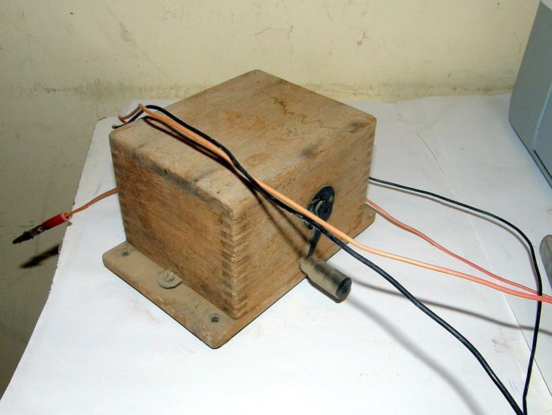 למעלה : המחולל הידני שייצר צלצול בטלפון היעד עם סיבוב הידית.