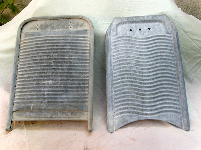 למעלה : פח הכביסה עליו שופשפה הכביסה בטרם המצאת מכונת הכביסה.