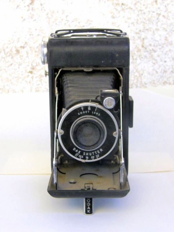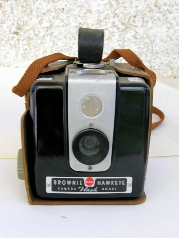 מימין : מצלמת הבראוני של קודאק שהיתה שיא השיכלול והניידות בשנת 1955 .