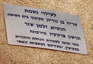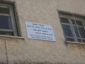 השלט שהוצב על ידי המשפחה על קיר ביתם הצופה לבית הכנסת העתיק