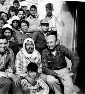 אריה ב.ג עם חניכים מיגור מבקר את משפחת זינאתי (1942)לאחר פרעות שישקלי בשנת 1939