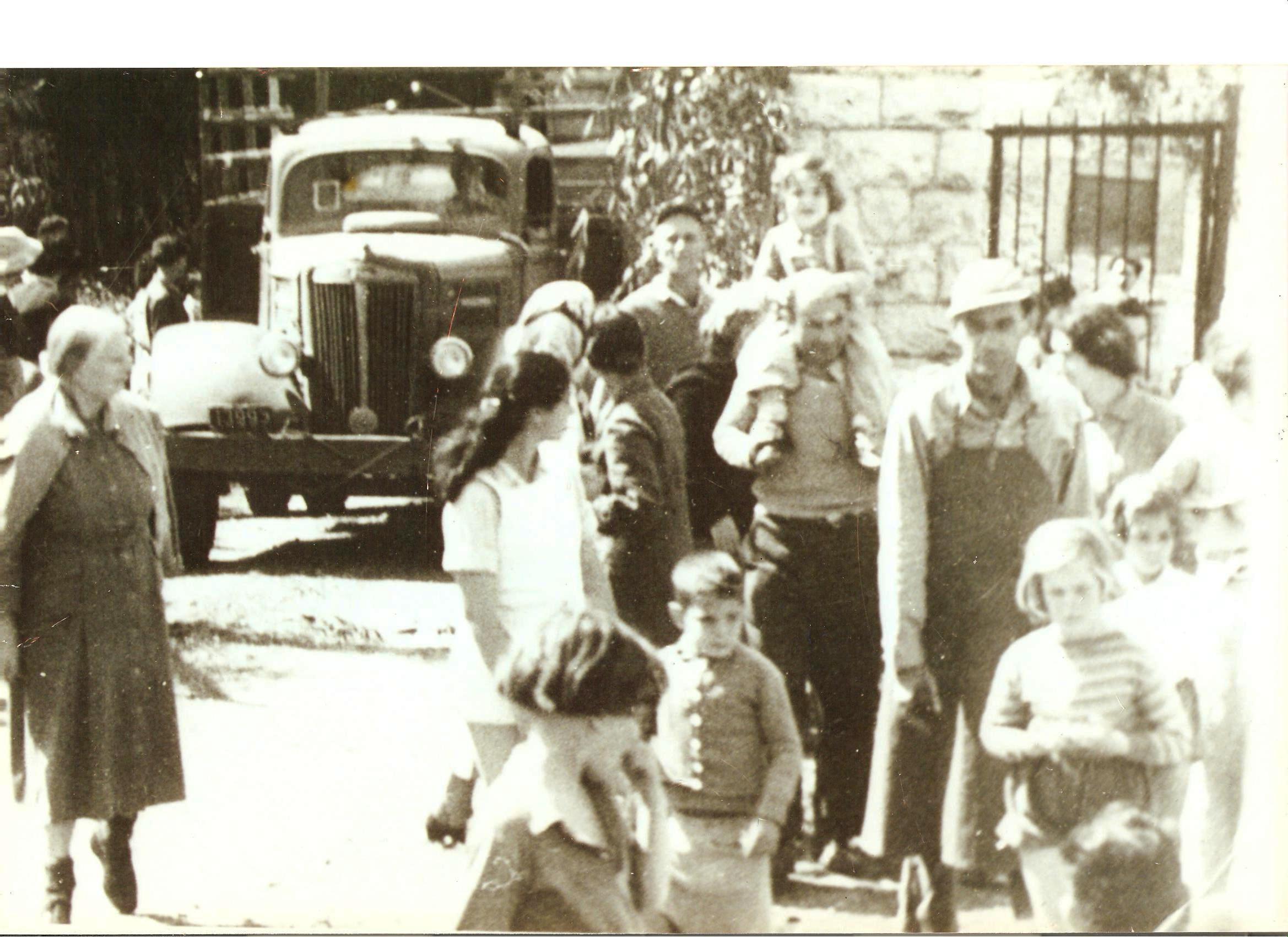 | חברי וילדי תל יוסף מגיעים לבית השיטה -1952בתמונה:משמאל רודה כצנלסון