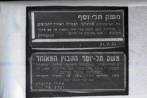 שמונה חודשים מרים עברו עלינו. שבענו כלימות ורוק, נגישות ואיבה. רוחנו לא חתה. איש אל אחיו אמרנו: יחדיו, וכך ניגשנו למשאל. והכרענו: חברי תל-יוסף וחברי בית-השיטה, חברי הקיבוץ המאוחד מתאחדים.