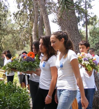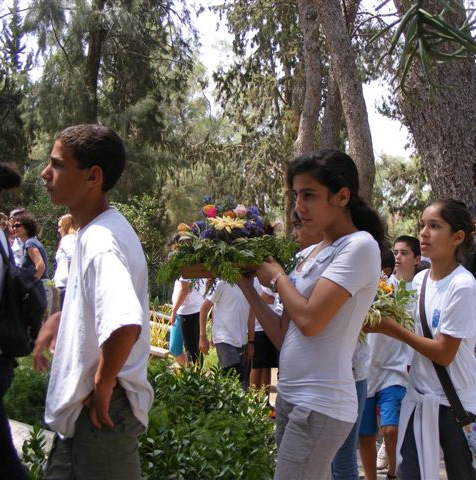ילדי חברת הילדים הניחו הזרים על קברות הנופלים.