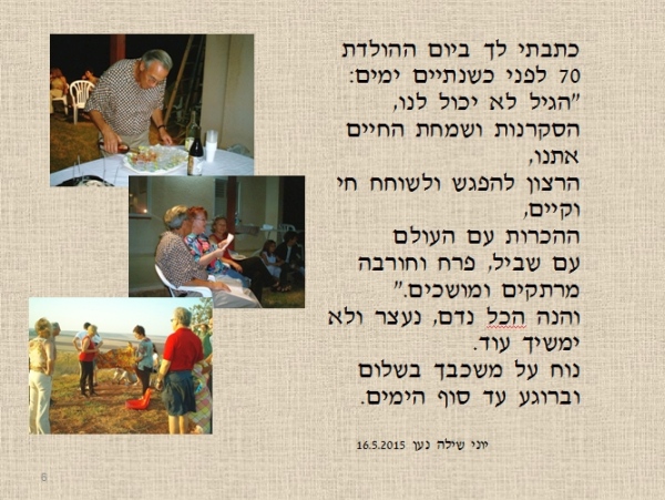 תודה שלימדת אותנו מהם ערכים נפלאים של אהבת המולדת, אכפתיות אינסופית לאחר, ורצון תמידי לתרום ולהשפיע לטובה.